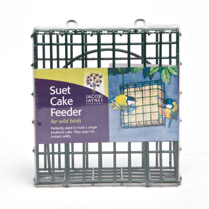 An advantage of a suet block feeder in this design, is that ground feeding birds such as Robin and Blackbird are able to stand on the flat top of the feeder and therefore can peck at the suet below them.