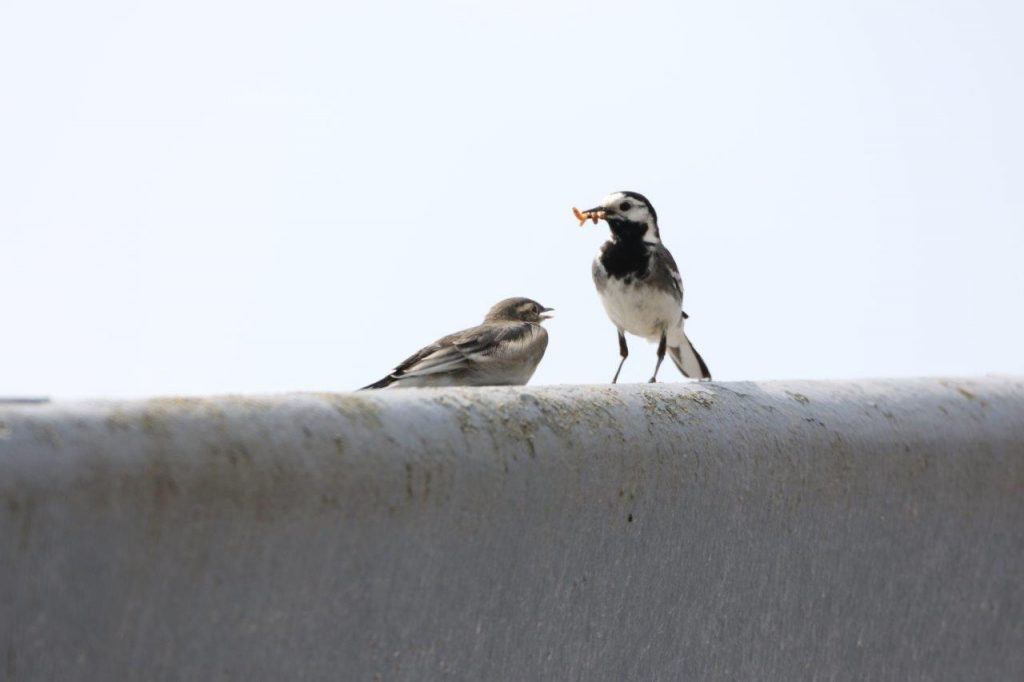 This fledgling appears to be too full to take on the mealworms being offered!