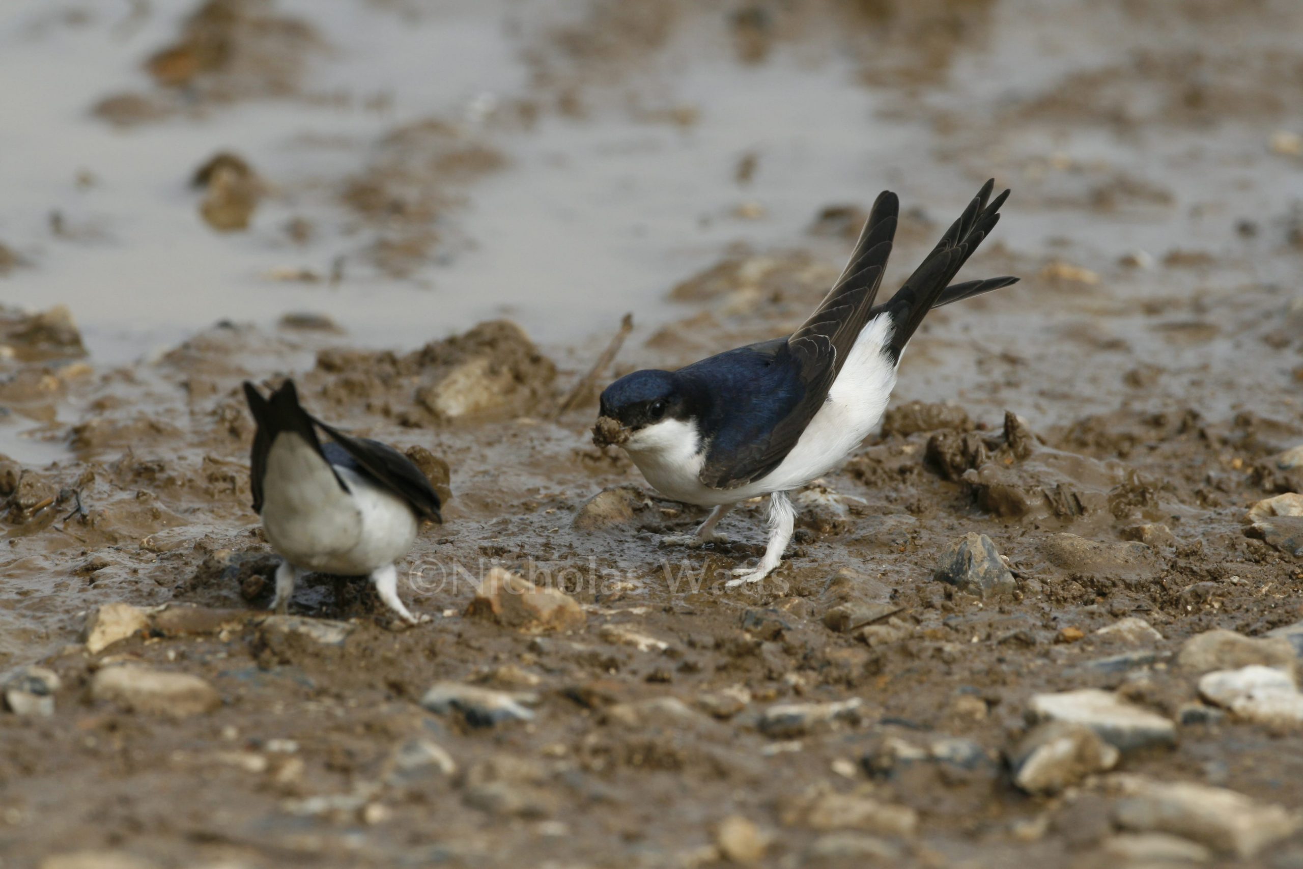 The House Martin is a summer migrant to the UK from its wintering grounds in Africa. It is a smallish bird with a glossy blue-black back and pure white underparts and distinct white rump. It has a forked tail but doesn’t have the long streamers that a swallow has – and the lack of these, along with the white rump, is the best way to tell the House Martin from a Swallow at a glance when in flight. For bird lovers it is a thrill and privilege to have House Martins build nests under the eaves of their house, but for non-bird-lovers it is, sadly, often anything but, with the mess the birds create often resulting in the destruction of nests – something which is illegal if the nest is being built or is in use.