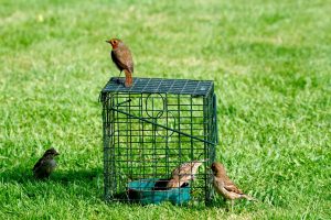 Cage feeders are the best way to feed live mealworms for house sparrows and other small birds[/caption]