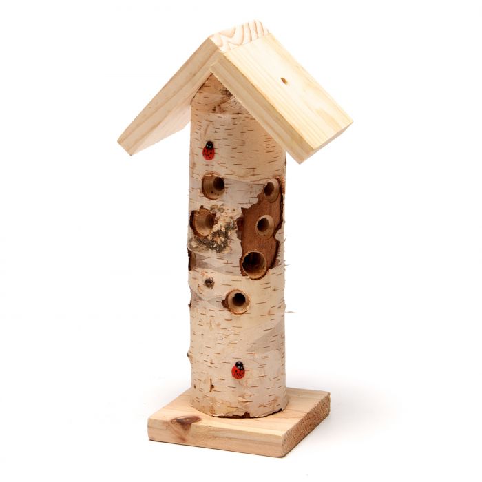 Made from natural birch, this Tower Ladybird House has a central chamber for ladybirds to safely hibernate in over the cold winter months.